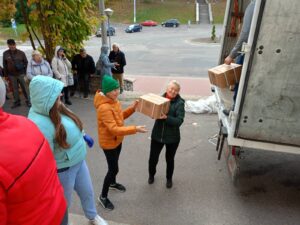 – Допомогу отримали близько 600 людей (це 300 сімей), які зараз проживають на території Канівської громади, – поінформувала директор Канівського міського центру соціальних служб Валентина Яворська. Це тільки внутрішньо переміщені особи (ВПО), зокрема, таких категорій: люди з інвалідністю, багатодітні сім’ї, люди похилого віку та новоприбулі за останні місяці. Допомагали в роздачі допомоги ГО «Покликані жити» (Яна Чайковська) і ГО «ВПО України» (Анна Пелих).
