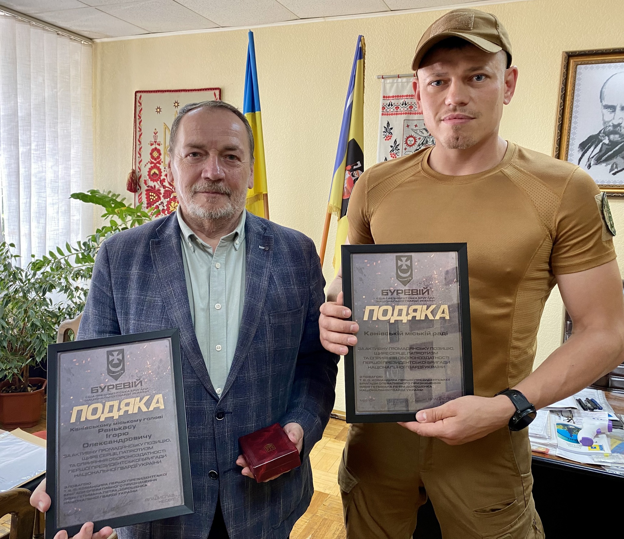 За активну громадянську позицію, патріотизм і сприяння обороноздатності днями Канівська міська рада та міський голова Ігор Ренькас отримали подяки від Першої Президентської бригади Національної гвардії України «Буревій». Їх передав канівець, майор Олег Квітко. Він, до слова, з 2015 року несе військову службу, а з початку повномасшабного вторгнення боронить Україну у найгарячіших точках фронту. Про це […]
